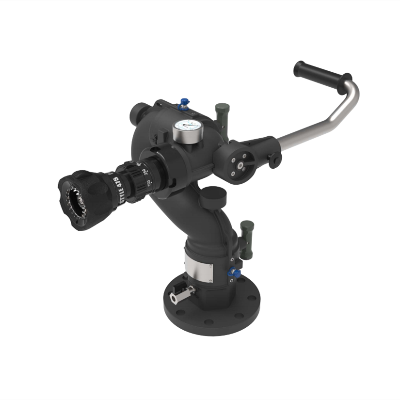 El monitor de incendios con boquilla 475LPM presenta una estructura novedosa, rendimiento estable y confiable, operación flexible y mantenimiento conveniente, con un rango de desplazamiento vertical de -45° a +75° y un rango horizontal máximo de 360°.